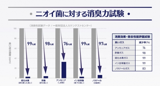 菌に対する消臭力は下記のとおりです。
