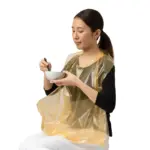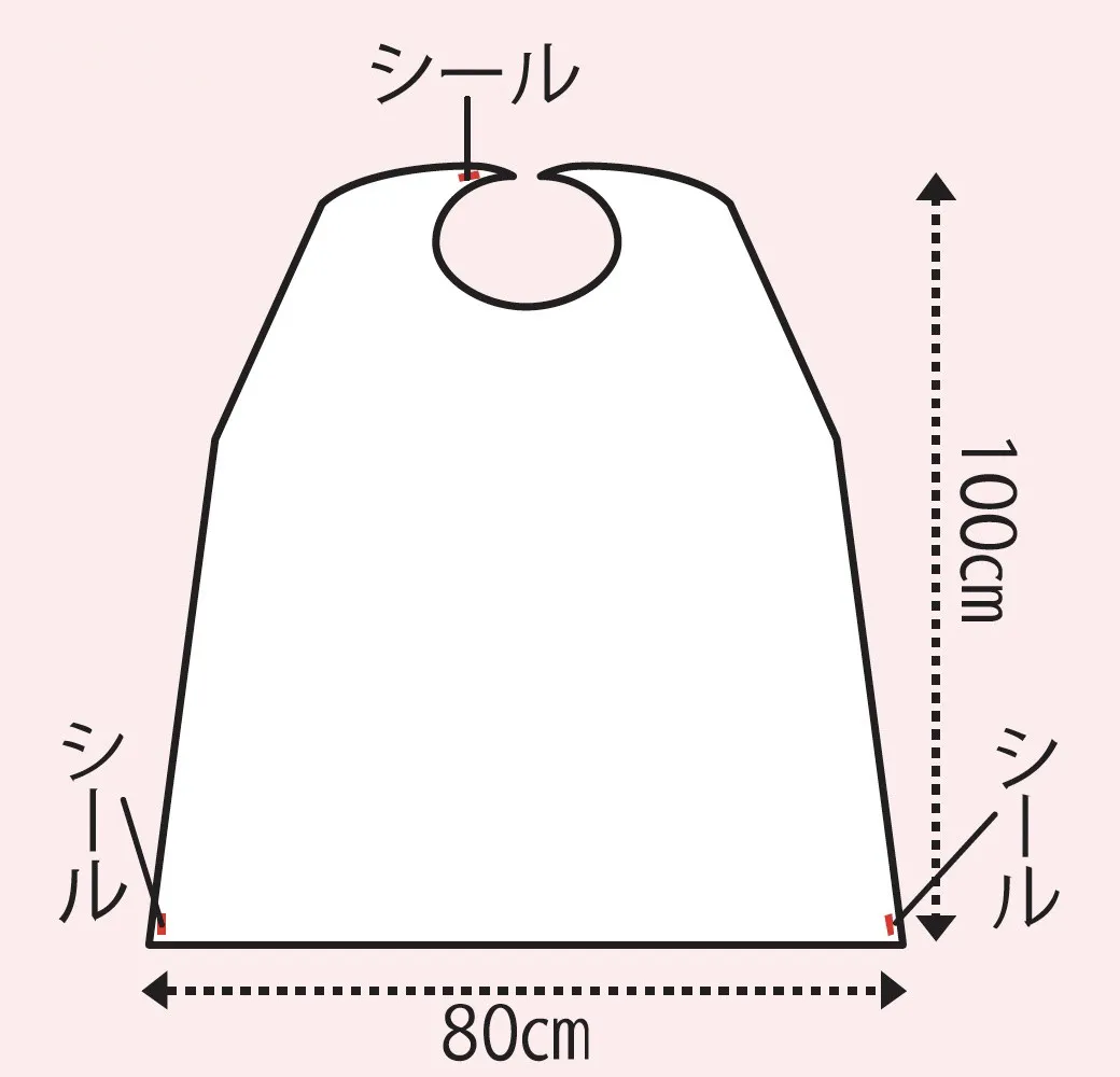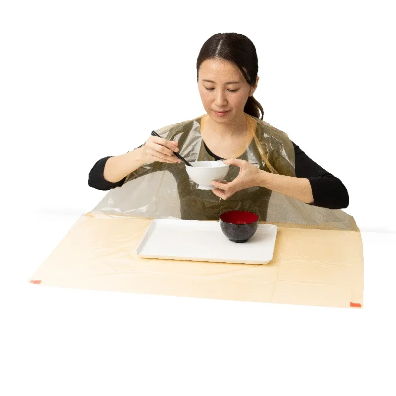 エプロンの裾にシールが付いておりテーブルに貼れば食べこぼしをキャッチ。