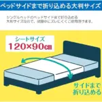 ベッドサイドまで折り込める120×90cmの大判サイズで、万一の漏れを防ぐ